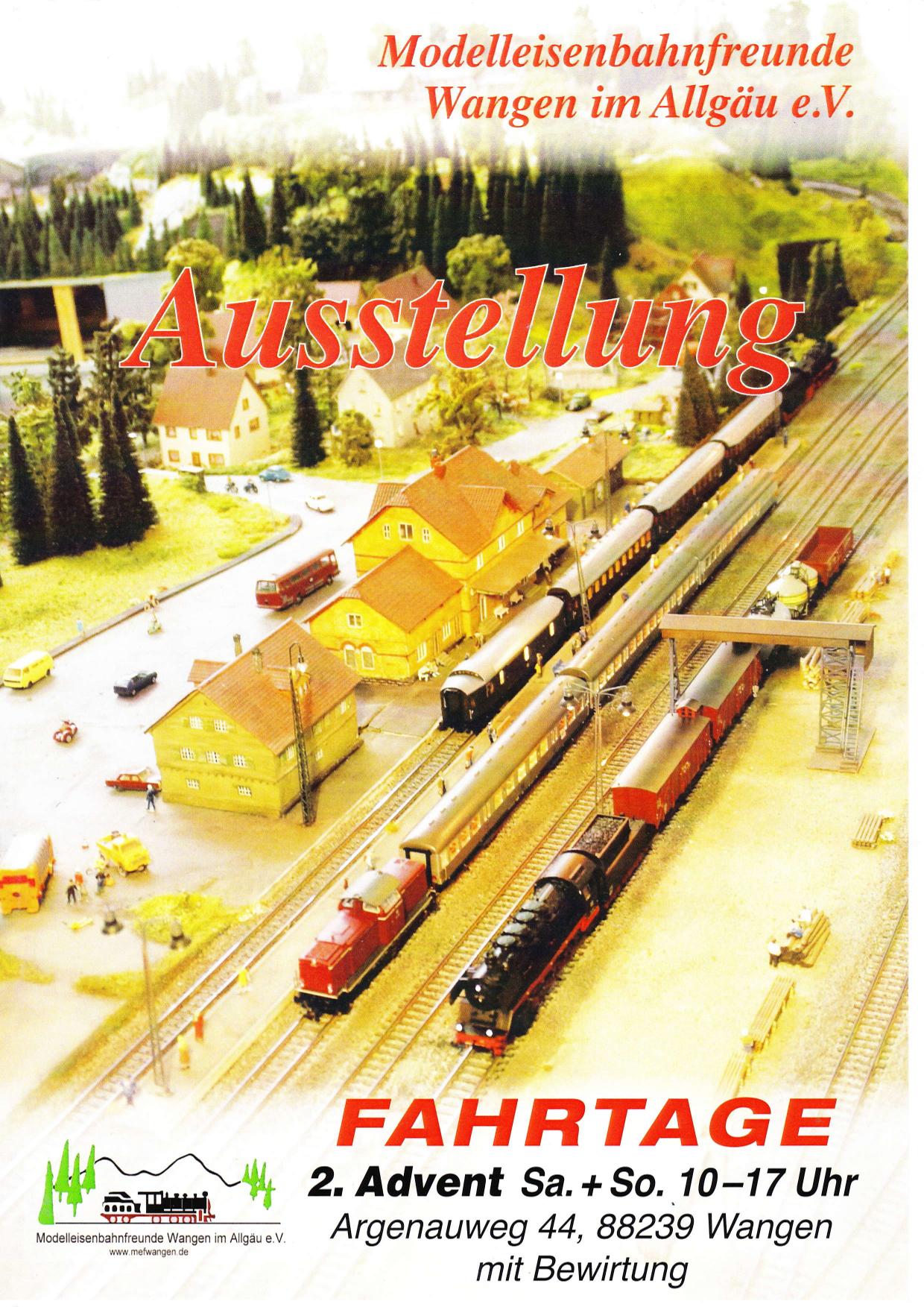 Fahrtage Modelleisenbahnfreunde Wangen Am Samstag 09.12.2023 und Sonntag, 10.12.2023 von 10:00 bis 17:00 Uhr veranstalten die MEF Wangen wieder Fahrtage. Wir freuen uns auf euren Besuch.